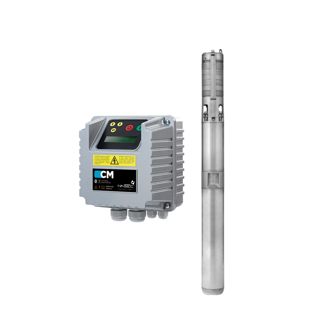 The 4HS series consists of 4″ submersible borehole pumps with stainless-steel multistage hydraulics and a water-cooled permanent-magnet motor with encapsulated resin stator. Controlled by the surface-mounted CM module, these pumps maintain constant pressure demand through variable-speed operation, starting and stopping gently to reduce mechanical stress and energy consumption. The CM also protects the system from dry run, overloads, surges, under/over-voltage delivering a complete, ready-to-install pumping solution certified for potable water use.